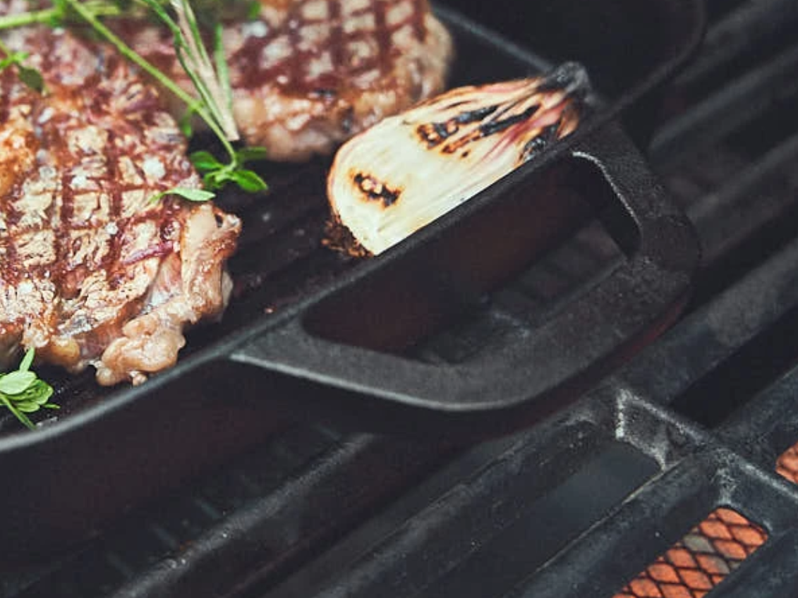 "מחבת יצוקה לסטייקים עם פסי צריבה מושלמים"