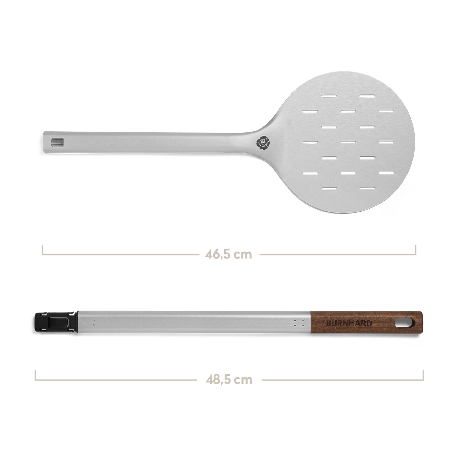 גודל משטח מסובב הפיצה והידית המובנית הוא 18x46.5 ס"מ. גודל הידית הנשלפת הוא 48x2.5 ס"מ.