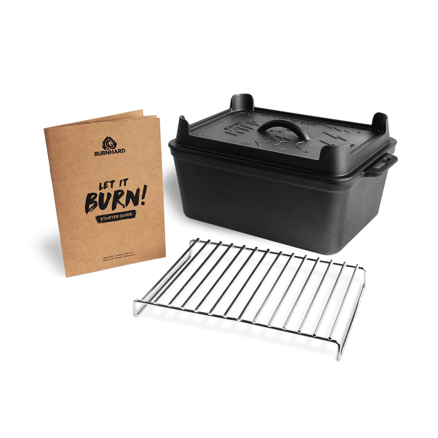 כל גיבור צריך את העוזר הצמוד שלו! סיר האפייה היצוק של ברנהרד יהיה העוזר החדש שלך בכל סוגי הבישולים. על המדורה, על הגריל או על הכירה בבית. הסיר המלבני עשוי ברזל יצוק קשוח במיוחד, ואין סוף לסגנונות התבשילים שתוכל להכין איתו.