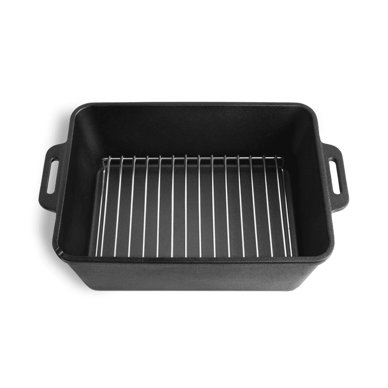 סיר האפייה המלבני והיצוק עשוי מברזל עמיד במיוחד וחסין לחום. הברזל שומר היטב על הטמפרטורה ומחלק אותה בצורה שווה בכל חלקי הכלי.