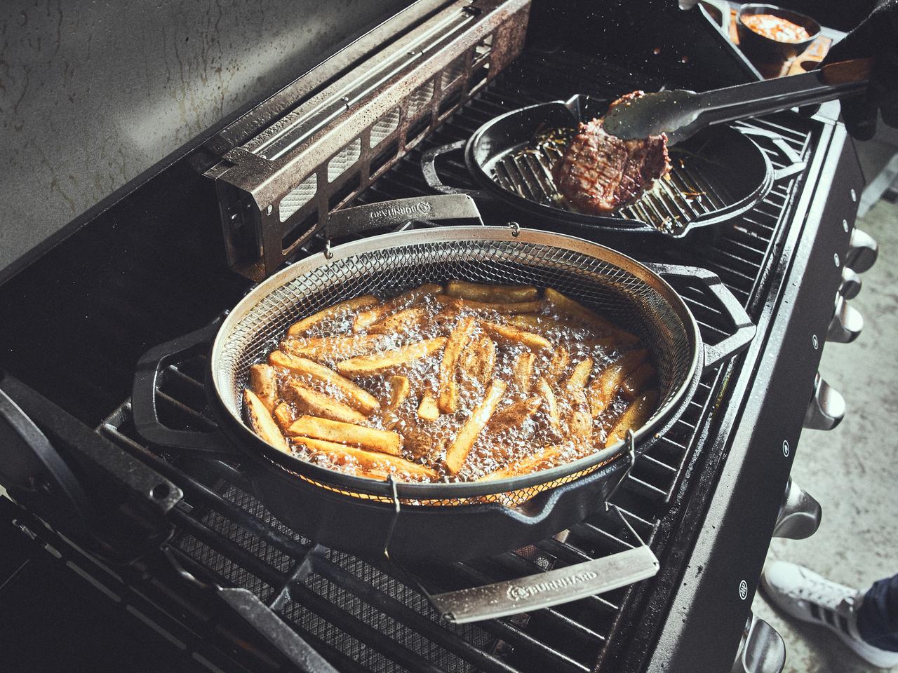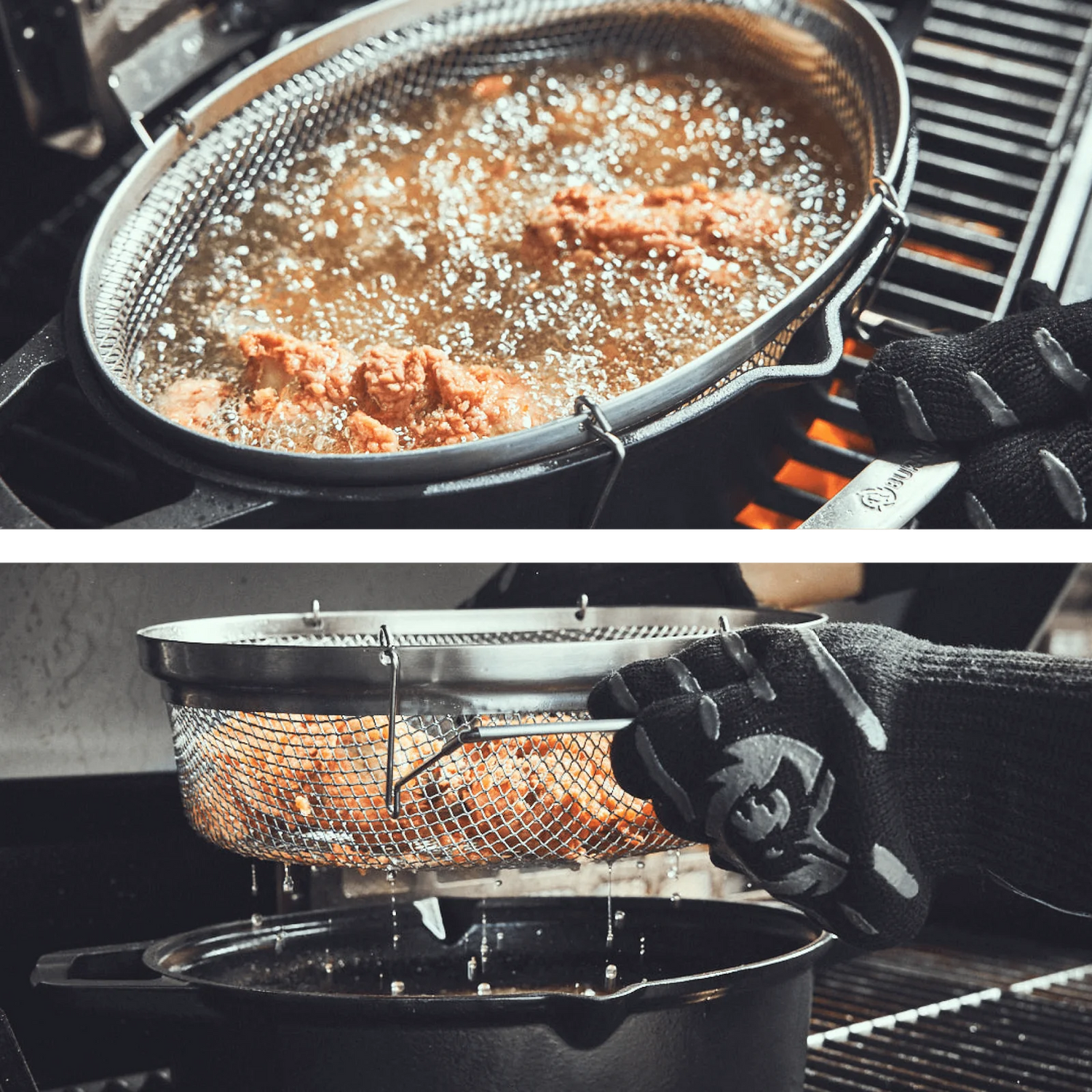 הפכו את הגריל שלכם למכשיר טיגון עמוק, ואת האוכל שלכם לפריך באופן חלומי: בסלסלת הטיגון מנירוסטה תוכלו להכין צ'יפס, עוף מטוגן, ירקות ועוד.