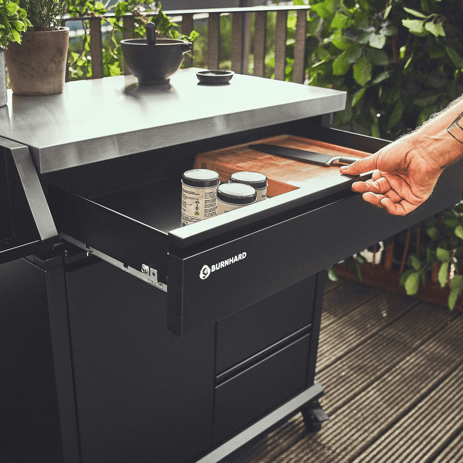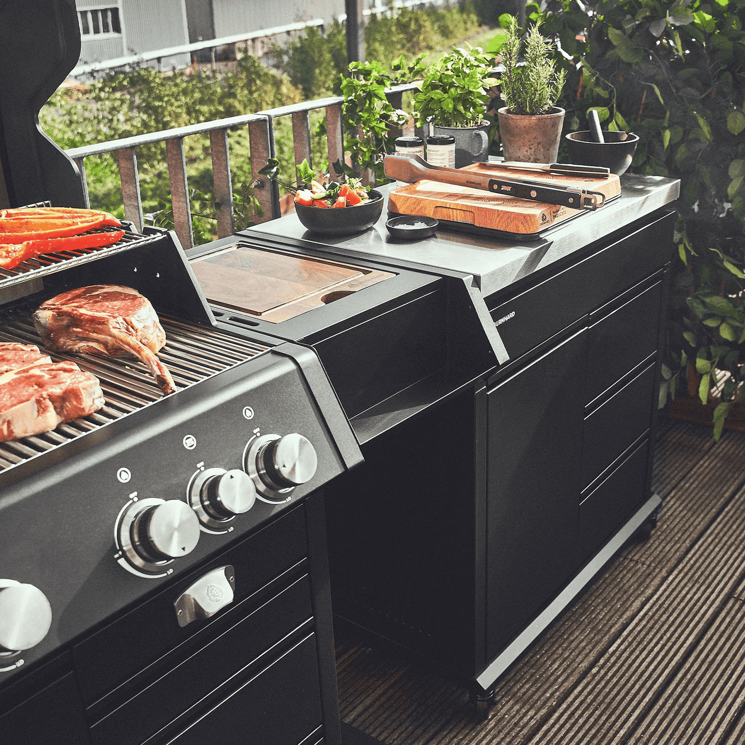 הפכו את חווית הברביקיו לקלה ונוחה יותר עם מגירות מרווחות ופרקטיות ומשטח עבודה נדיב. -