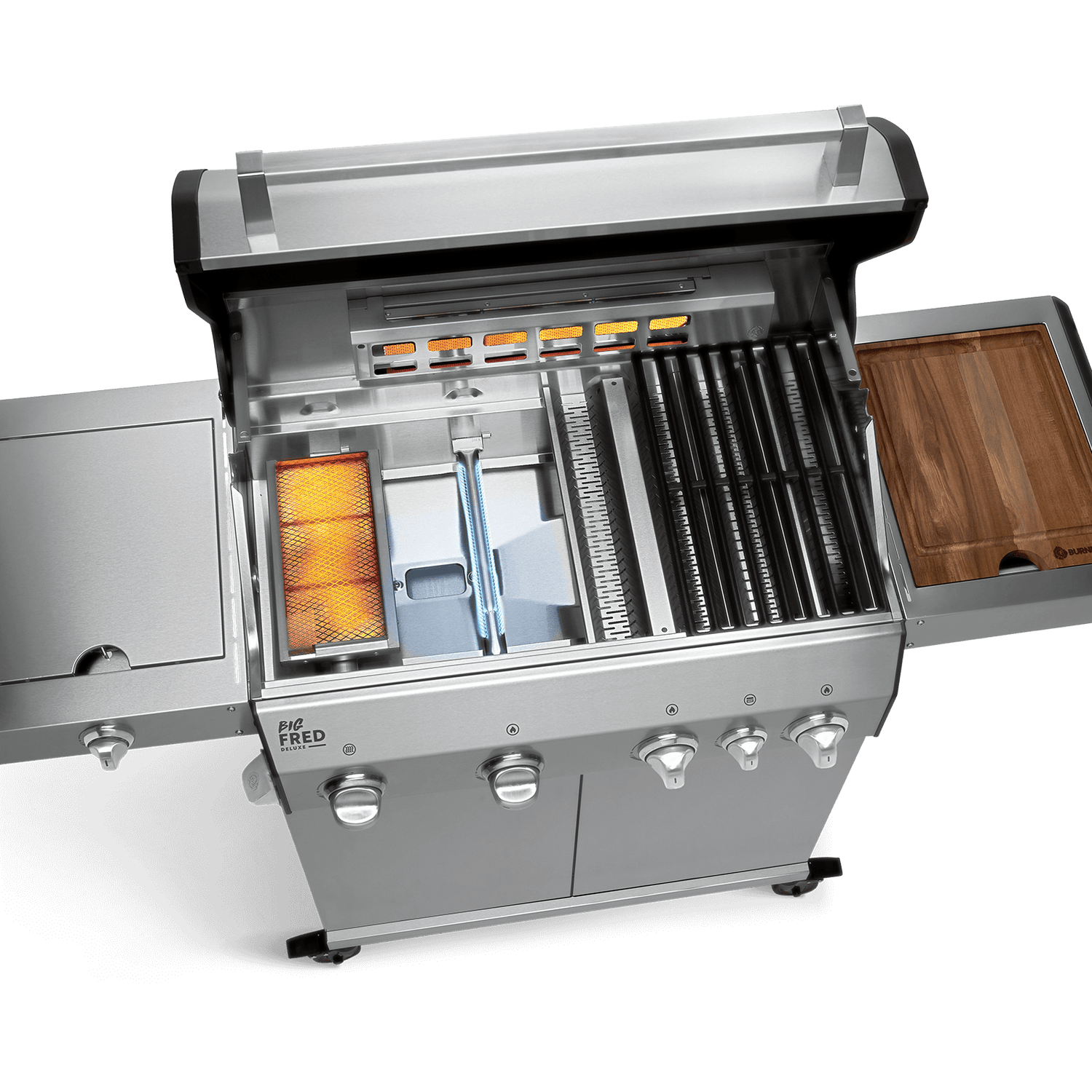 פרד הגדול מצויד ב-3 מבערי נירוסטה עוצמתיים, ובשני מבערי אינפרא-אדום קרמיים, אחד מאחור ואחד בצד, המגיעים עד 900 מעלות.