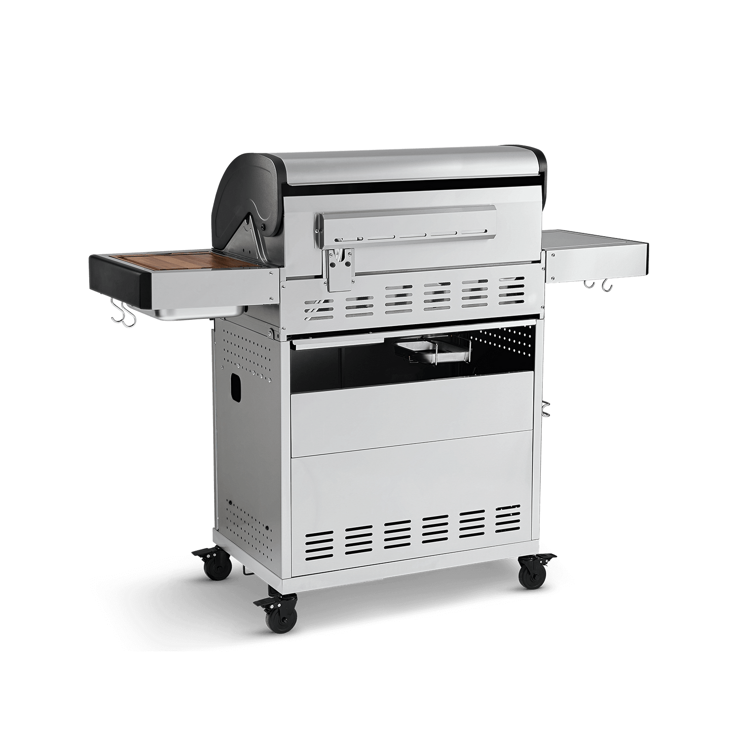 הגריל כולל שולחנות צד מתקפלים, עם משטח עבודה מעץ שיטה מובחר, לעבודה נוחה וקלה במהלך צליית הבשרים.