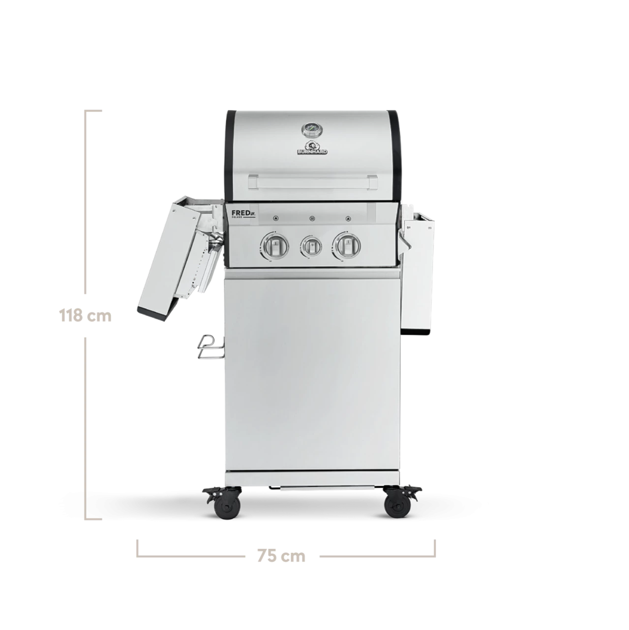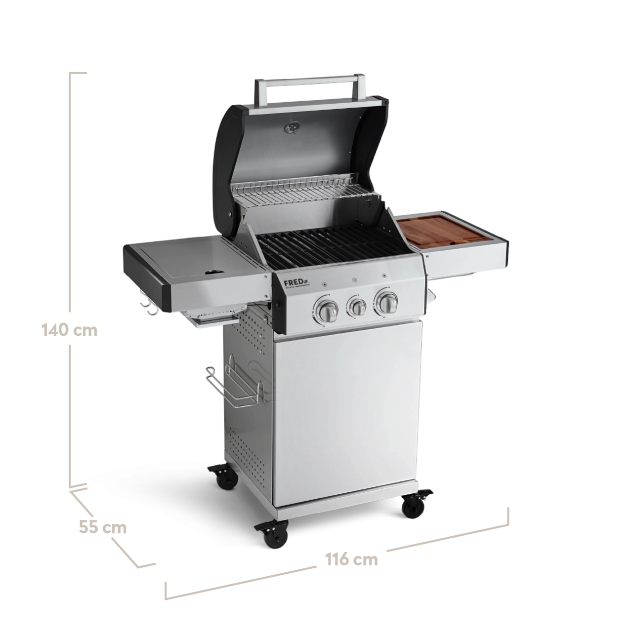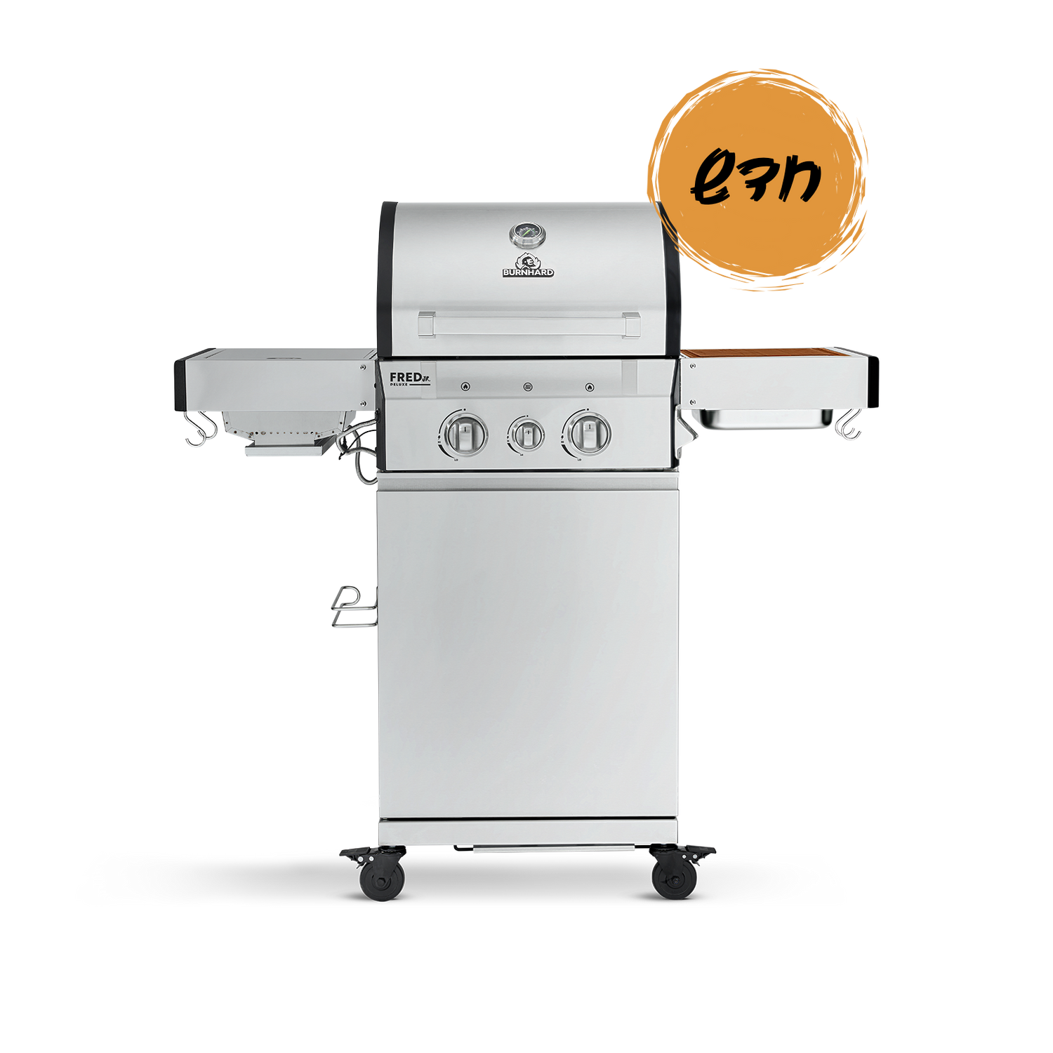 2 מבערי הנירוסטה של פרד הקטן בוערים בהספק של 3.5 קילוואט כל אחד, והופכים את משטח הגריל שלך לסדנת בשרים אמיתית. המבנה המוקפד מפזר את החום בתא הצלייה, וכבונוס דואג שנטפי השומן והמיצים יתאדו במהירות ויעניקו טעם נפלא לאוכל הצלוי.