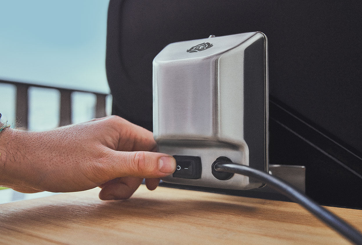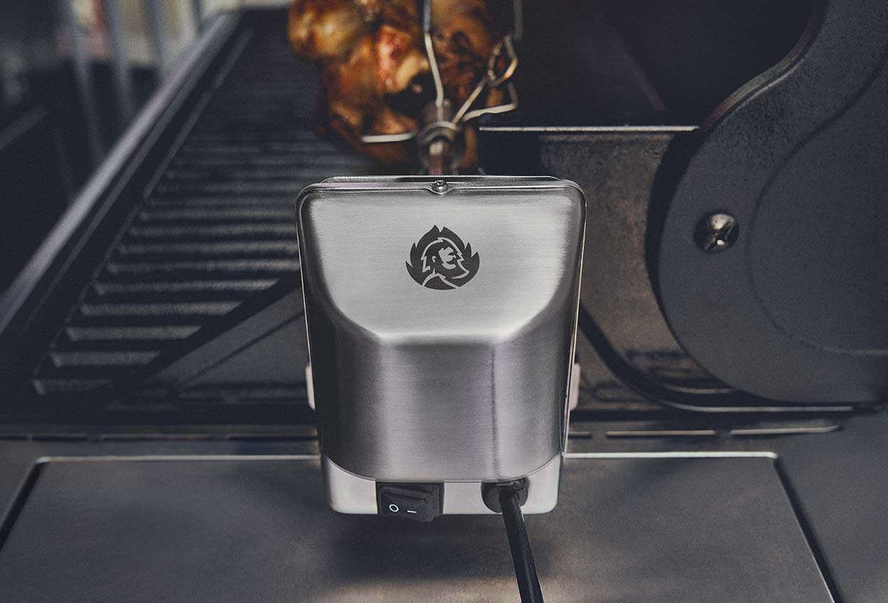 למוט הצלייה המסתובב תושבות נירוסטה מוצקות, שיקלו עליך לחבר אותו במהירות ל-FRED שלך. חיברת? לחץ על מתג ההפעלה, פתח בירה וצפה במנוע עושה את העבודה בשבילך.