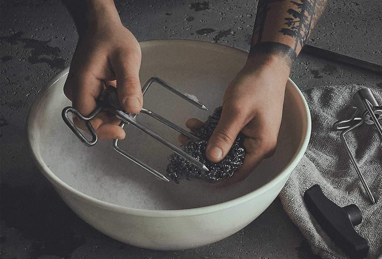 סיימת? רק התחלנו! אחרי השווארמה מגיע הצלי! בינתיים, אין מה להיות מוטרד מהניקיון. השיפוד ומזלגות הבשר עשויים מפלדת אל חלד ולכן קלים במיוחד לניקוי. הפרד בקלילות את חלקי השיפוד ונקה אותם במים חמימים, סבון כלים וספוג רך. אפילו יותר קל: פשוט הכנס הכל למדיח הכלים. מוכן לסיבוב הבא?