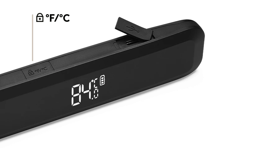 תצוגת הלד של מד החום המתקפל משתנה לפי זווית האחיזה שלכם, כך שתוכלו לראות את הטמפרטורה בכל מצב. הצג העוצמתי מאפשר לבדוק את הטמפרטורה גם באור שמש חזק וגם בחושך. התצוגה נעלמת בסיום המדידה באופן אוטומטי, לקבלת מראה אלגנטי ומינימליסטי בסיום השימוש.