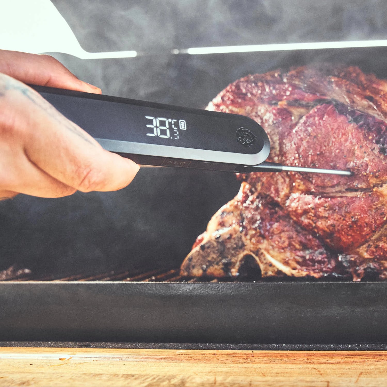 כן, מד החום מודד רק את הטמפרטורה שבקצה המחט, כך שתוכלו לדעת בדיוק מה הטמפרטורה בחלק הפנימי ביותר של הנתח.